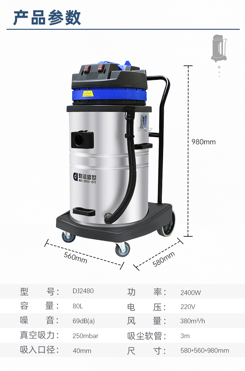 DJ2480 鼎潔盛世工業(yè)吸塵器強(qiáng)吸力低噪音