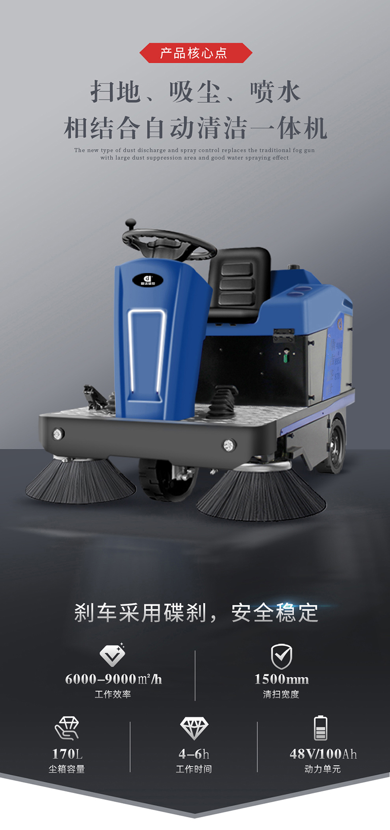 清掃公園、街道、車站、碼頭、市政道路、物業(yè)小區(qū)、 倉庫、廠區(qū)車間、學(xué)校、體育場、大型會場、機(jī)場等區(qū)域